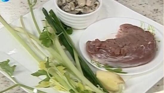 粉肉湯的材料:豬肉、海蠣、蔥姜、芹菜、生粉;醬油、鹽、胡椒粉、雞粉、白醋、香油;