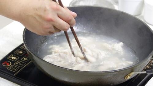 2.做過偶倒水燒開,把攪拌均勻的肉片一片一片的加入到鍋中煮熟,然后加入苦筍煮開后,調(diào)入鹽,味精,雞精調(diào)味后起鍋再撒上蔥花就好了。