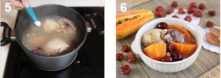 3. 放入木瓜,中火再煮20分鐘。加入鹽調(diào)味就好了。