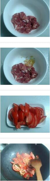 1.豬瘦肉洗凈切小薄片,或者切薄條也可以,抹上鹽腌制入味,切末,番茄切片,蔥切蔥花備好