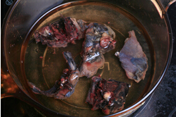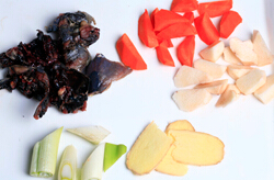 3.鍋內(nèi)重新添水,并放入蔥、姜、烏雞。