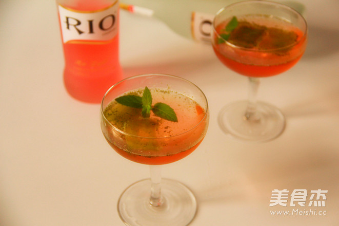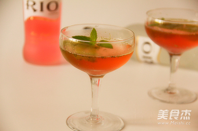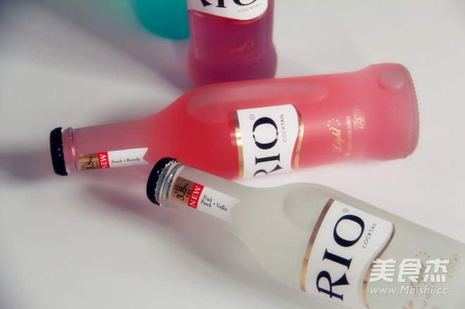 5.倒入蜜桃味RIO預(yù)調(diào)雞尾酒。