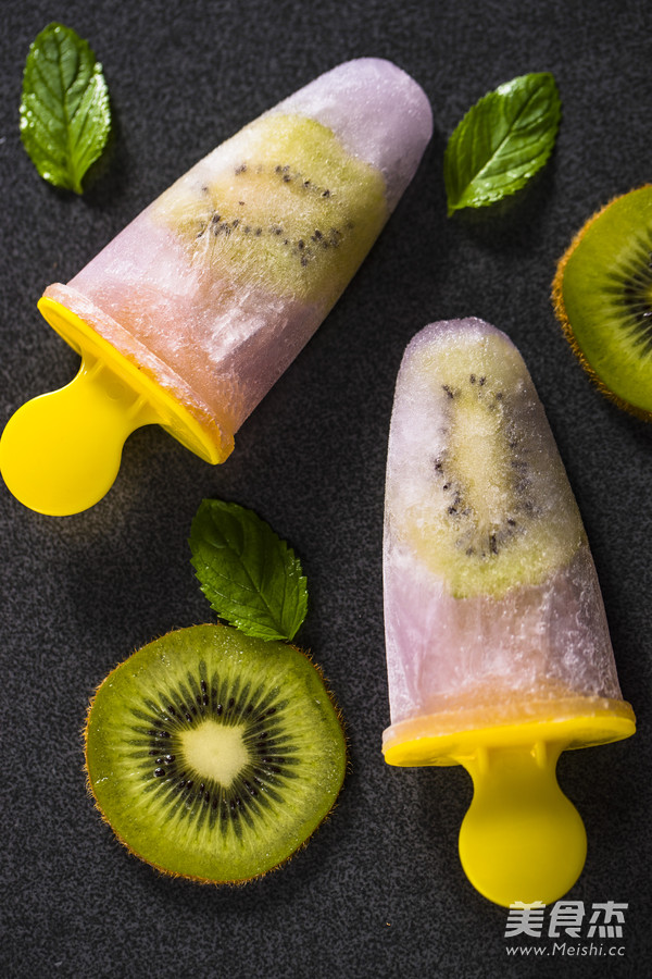 5.5個小時之后就可以吃到奇異果味的雞尾酒冰棍啦,并且還有淡淡的葡萄味。