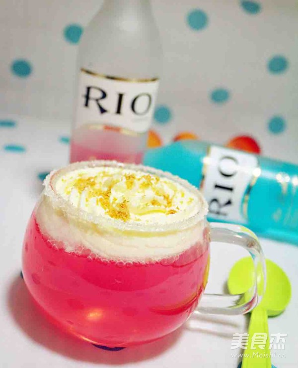 5.在裝好雞尾酒的杯子里面擠入適量打發(fā)得淡奶油,裝飾上餅干碎,即可完成這道甜心天使