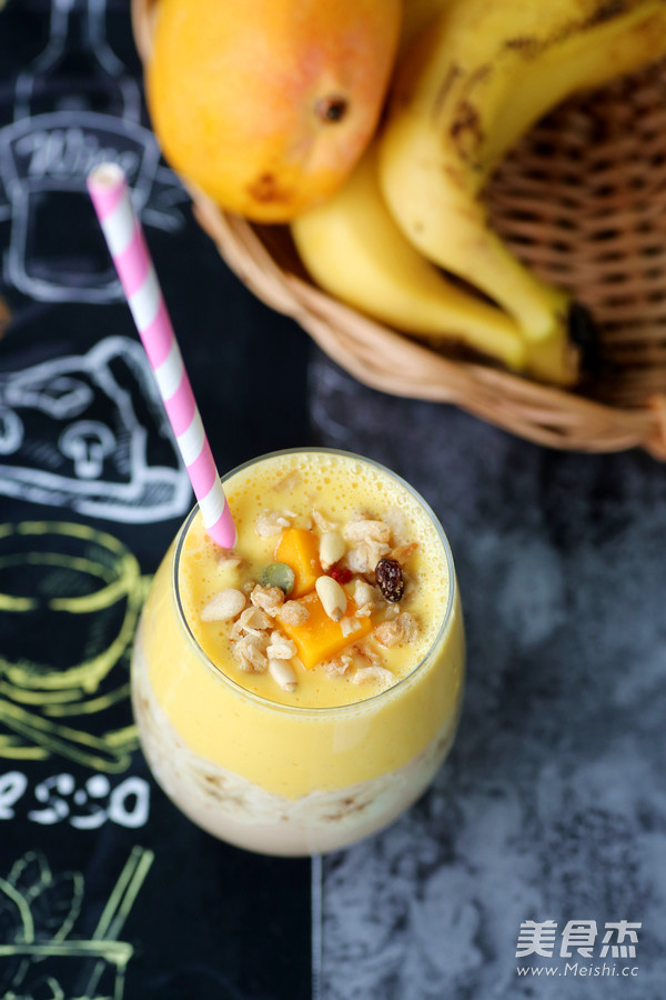 香蕉1根 芒果半個(gè) 酸奶200克 蜂蜜10毫升 冰塊5塊