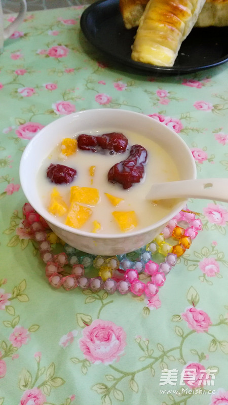 紅棗可以久煮,先放。 麥片不宜加太多,吸水后麥片會變稠??梢跃弥?。 牛奶最后加入,不能煮沸,否則,牛奶會變得有沉淀,不好看又破壞營養(yǎng)。 我是一家三口的量,用量僅供參考哈。喜歡吃糖的可以適當加點。
