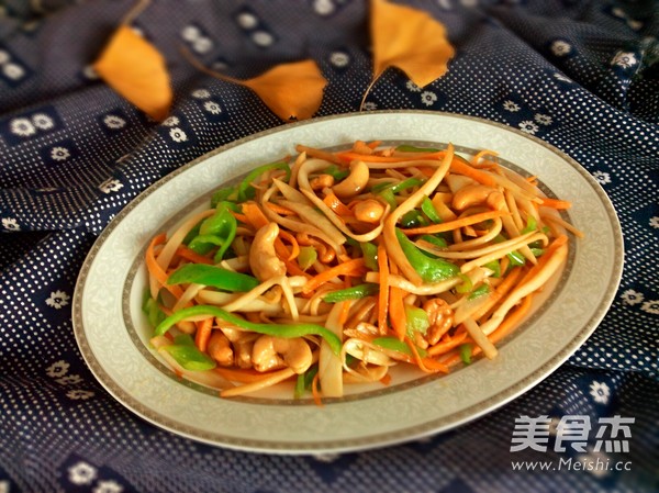 杏鮑菇在生活中式一種比較常見的菌類,不但物美價廉而且營養(yǎng)豐富,經(jīng)常食用能有效提高人體的免疫力,強身健體,它還具有降血脂,防癌的功效,青椒富含維生素C,能增強體力,一般人群均可食用。胡蘿卜具有健脾消食,補肝明目,止咳的功效,腰果的營養(yǎng)也十分豐富,尤其是老年人適當(dāng)食用腰果對身體大有益處。