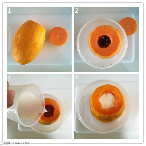 5.圖3-降溫好的牛奶液倒入木瓜里。
