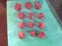 6.開始來剁豬肉了。加少許鹽,和水一起剁會使肉更易燉爛,如果懶可以請肉檔師傅先絞好。