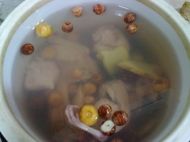4.最后把蓮子、無花果、蜜棗、姜片、鵪鶉和豬肉放入燉盅里,注入水,燉2個小時即可。