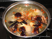 1.將靈芝撕成小塊與雞殼一起入鍋加水燒開。