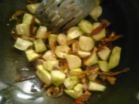 8.炒至7層熟的狀態(tài)后倒入之前煎好的豆腐入味放入鹽