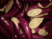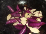4.另起油鍋用25克油,把茄子也翻炒一下