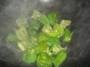 3.起油鍋用25克油,先把辣椒翻炒一下,炒至七分熟
