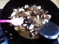 8.切成瓣的香菇下鍋翻均勻。