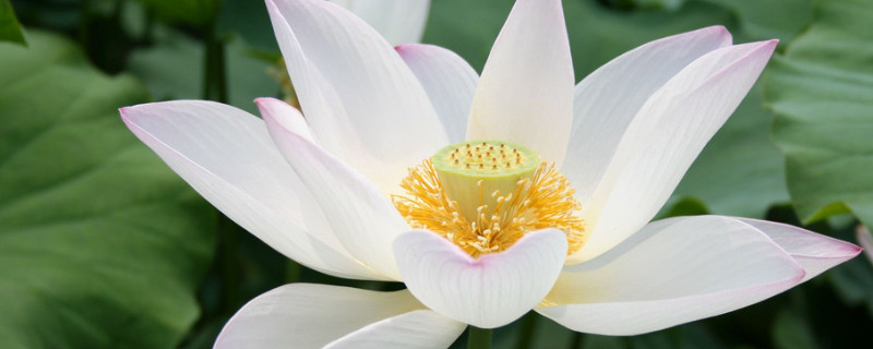 荷花常見的有白色,粉色,深紅色,有些比較特殊的品種也有淡黃色,黃色或者間色,荷花的盛花期在每年的七八月份,開花時(shí)單生于花梗頂端,花型比較大,又清淡的芳香,葉片也有一定的觀賞價(jià)值,為綠色圓盾形,能夠漂浮在水面上。
