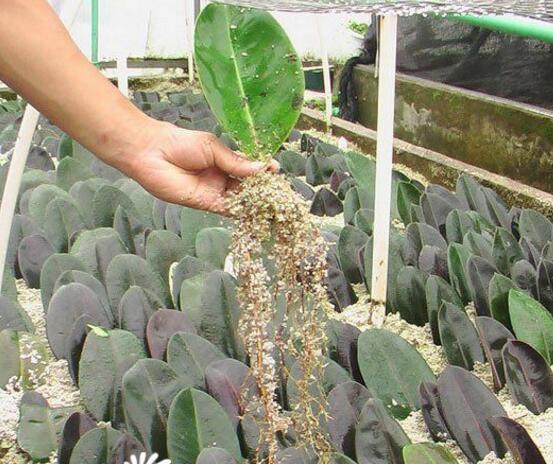 扦插后的幾天用遮陽(yáng)網(wǎng)遮蔭,用一根帶有噴霧嘴的皮管接在水龍頭上,每天噴霧8~10小時(shí),經(jīng)過(guò)25~30天的管理即有新根長(zhǎng)出,待40天時(shí)即可上盆,上盆后當(dāng)年可長(zhǎng)出2~3片新葉,用此法繁殖速度快且成活率高,一般成活率可達(dá)95%以上。