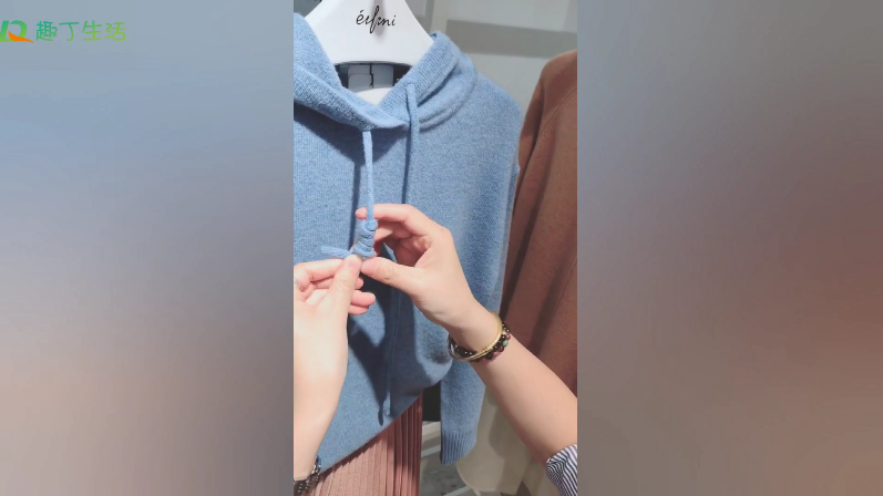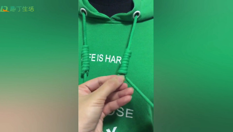 方法一:最近很流行的衛(wèi)衣打結(jié),類似于中國(guó)結(jié)的樣子,根據(jù)視頻一步步操作就可以啦!