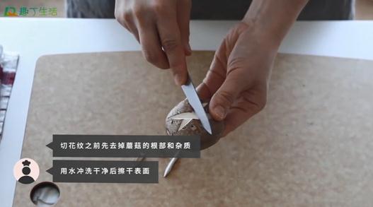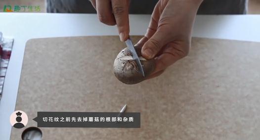 2、切花紋之前先去掉蘑菇的根部和雜質(zhì)