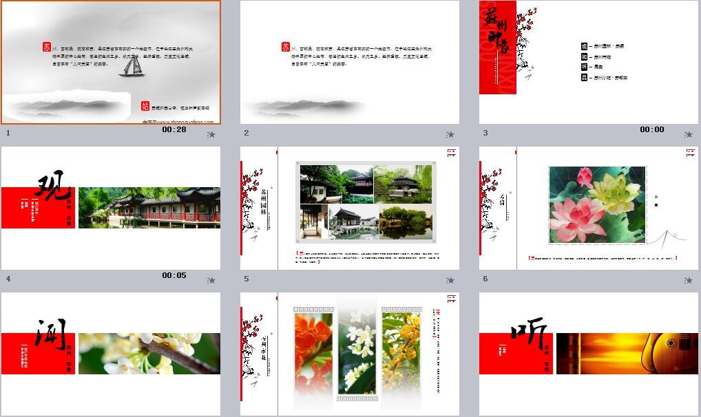 蘇州是中國首批24座國家歷史文化名城之一,有近2500年歷史,是吳文化的發(fā)祥地。蘇州人多屬江浙民系,使用吳語。蘇州園林是中國私家園林的代表,被聯(lián)合國教科文組織列為世界文化遺產。家佳樂文學小編為您帶來家佳樂文學蘇州印象PPT模板,適用于文化匯報、教育匯報、專業(yè)匯報等。