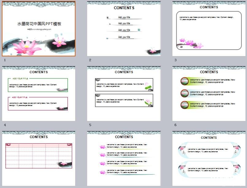 荷花全身皆寶,藕和蓮子能食用,蓮子、根莖、藕節(jié)、荷葉、花及種子的胚芽等都可入藥。其出污泥而不染之品格恒為世人稱頌。“接天蓮葉無(wú)窮碧,映日荷花別樣紅”就是對(duì)荷花之美的真實(shí)寫照。荷花“中通外直,不蔓不枝,出淤泥而不染,濯清漣而不妖”的高尚品格,歷來(lái)為古往今來(lái)詩(shī)人墨客歌詠繪畫的題材之一。家佳樂(lè)文學(xué)小編為您帶來(lái)水墨荷花家佳樂(lè)文學(xué)PPT模板,適用于文化匯報(bào)、教育匯報(bào)、專業(yè)匯報(bào)等。
