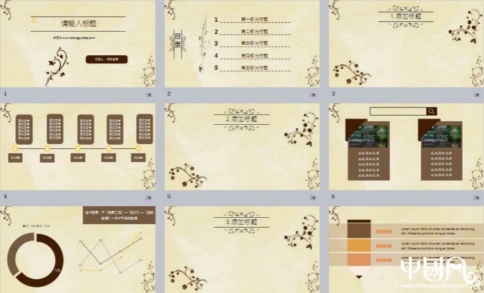枝葉藤蔓花邊米色懷舊簡約古樸ppt模板
