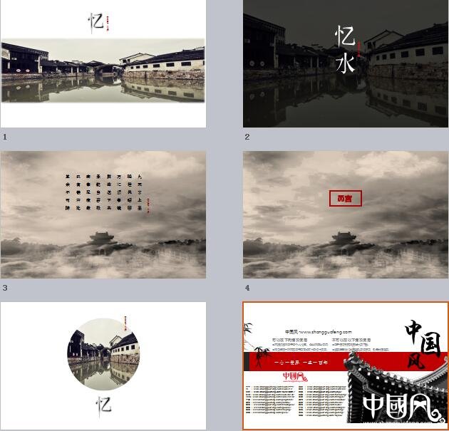 家佳樂文學山水古城復古PPT模板