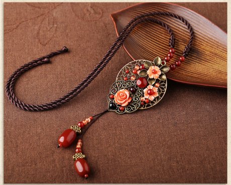 風(fēng)吹起如花般的流年,而你的笑容搖晃搖晃,成為途中最美的點(diǎn)綴,猶如拂過一陣微風(fēng),暖融融的。下面家佳樂文學(xué)小編為你帶來復(fù)古紅色花朵吊墜毛衣鏈項(xiàng)鏈?!?/p>