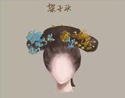 反綰成高墻,稱(chēng)高髻《簪花仕女圖》之發(fā)式。據(jù)《妝臺(tái)記》記載:開(kāi)元中梳反綰髻、回鶴髻,貴妃作愁來(lái)髻,貞元中歸真髻,貼五色花子。這種反綰梳編較難,多流行于盛唐,為后妃貴……
