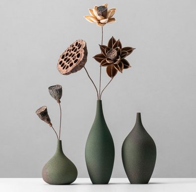 復(fù)古的風(fēng)格,質(zhì)樸清雅。典雅的器形,柔和優(yōu)雅的曲線,有著濃厚的復(fù)古清雅氣息。設(shè)計師通過仿青銅器的綠色銅銹的釉色,營造出真實青銅器的視覺效果。瓶面素?zé)ド暗暮裰刭|(zhì)感,……
