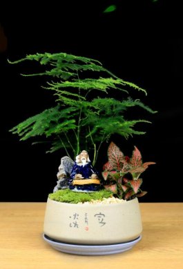 盆景是呈現(xiàn)于盆器中的風景或園林花木景觀的藝術縮制品。多以樹木、花草、山石、水、土等為素材,經(jīng)匠心布局、造型處理和精心養(yǎng)護,能在咫尺空間集中體現(xiàn)山川神貌和園林藝術之……
