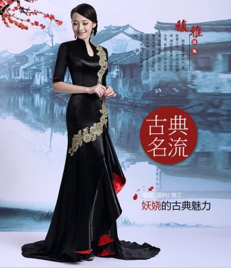 復(fù)古領(lǐng)口設(shè)計,利落干凈,修飾身形和臉型,簡約的袖口,直線規(guī)整,穿著舒適,流暢的裁剪,適度的開叉,性格而不俗套。下面家佳樂文學(xué)小編為你帶來絲絨長款旗袍,改良中式旗袍?!?/p>