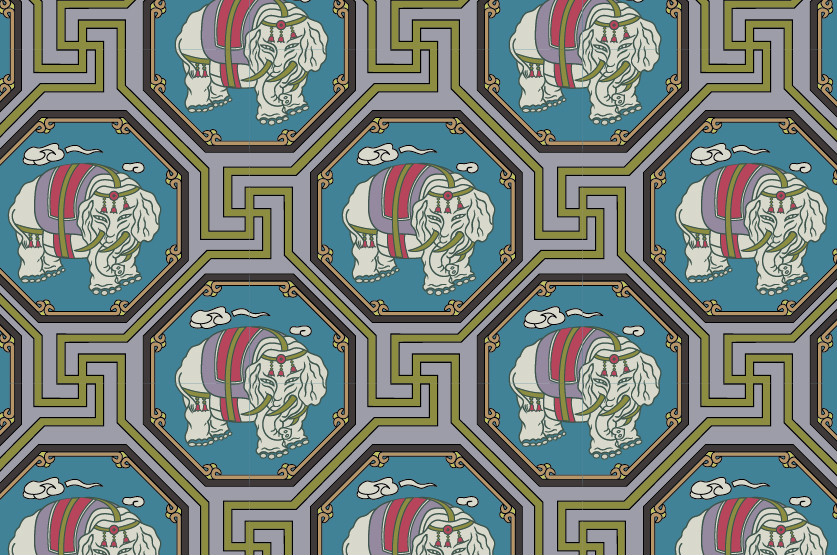 中國(guó)傳統(tǒng)織錦吉象圖案與配色,矢量素材AI圖片