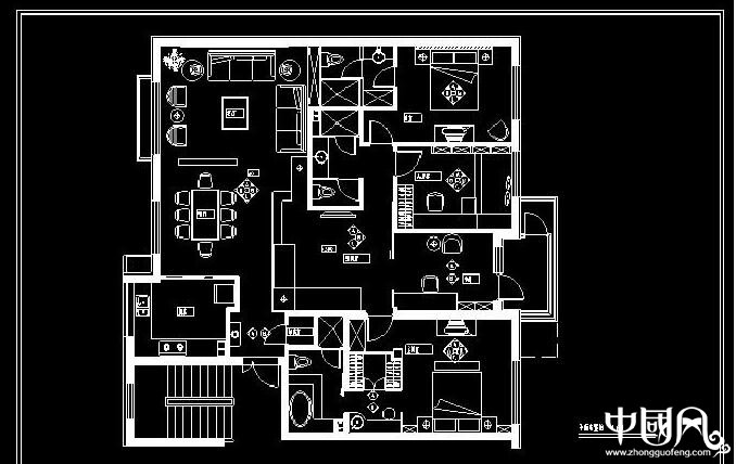 中式四房三廳住宅高檔裝修cad中式圖庫
