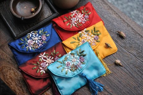 這款袋子每一個都很傳統(tǒng),很古意,也蠻值當(dāng)。這些老祖宗留下的顏色都非常蠻耐看,也非常端莊大氣的。袋子是用絲綢做的,古風(fēng)緞面的小首飾袋,手工絲帶繡花配小流蘇,精致婉約……