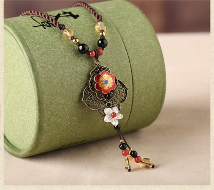 風(fēng)吹起如花般的流年,而你的笑容搖晃搖晃,成為途中最美的點綴,猶如拂過一陣微風(fēng),暖融融的。下面家佳樂文學(xué)小編為你帶來復(fù)古紅色花朵吊墜毛衣鏈項鏈?!?/p>