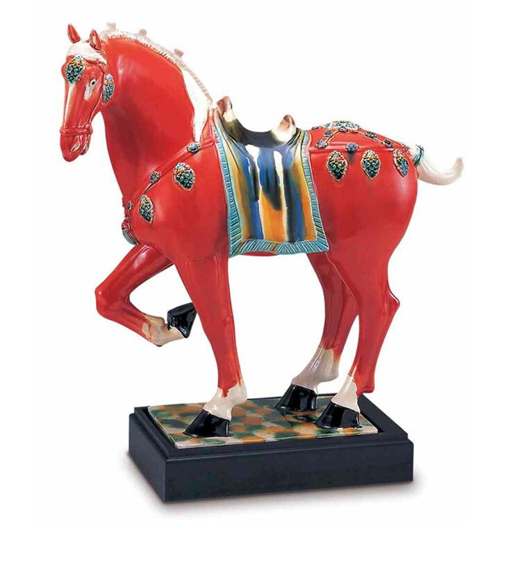 經(jīng)典三花馬是專供當(dāng)時(shí)三品以上官員所騎,馬匹肌肉線條優(yōu)美、通身裝飾華麗,俊美灑脫,神滿氣足,乃唐代駿馬的代表之作?!?/p>