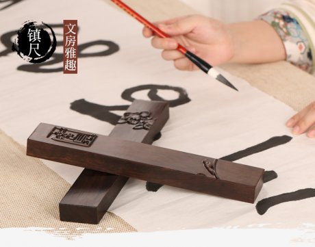 鎮(zhèn)紙,即指寫字作畫時(shí)用以壓紙的東西,常見的多為長(zhǎng)方條形,因故也稱作鎮(zhèn)尺、壓尺。最初的鎮(zhèn)紙是不固定形狀的。鎮(zhèn)紙的起源是由于古代文人時(shí)常會(huì)把小型的青銅器、玉器放在案頭……