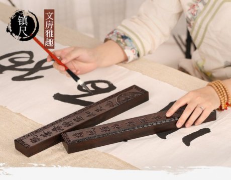 鎮(zhèn)紙,即指寫字作畫時(shí)用以壓紙的東西,常見的多為長方條形,因故也稱作鎮(zhèn)尺、壓尺。最初的鎮(zhèn)紙是不固定形狀的。鎮(zhèn)紙的起源是由于古代文人時(shí)常會把小型的青銅器、玉器放在案頭……