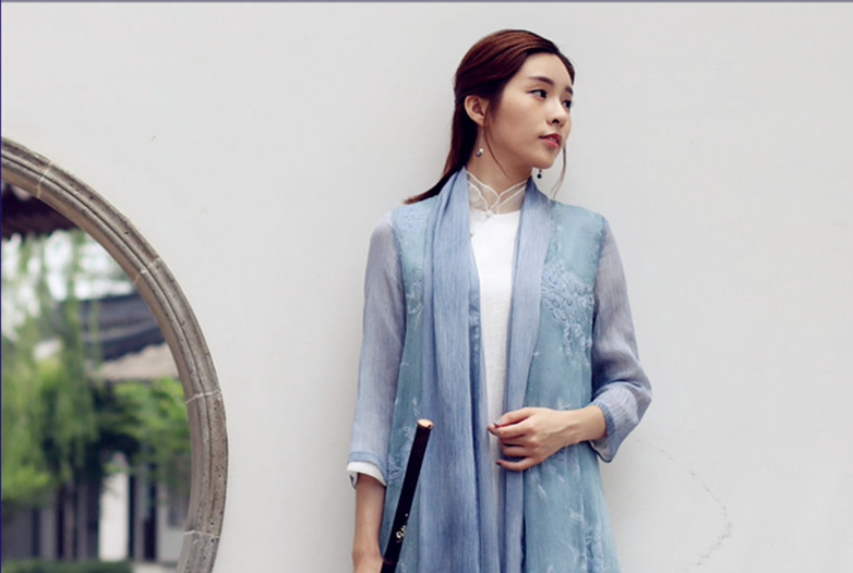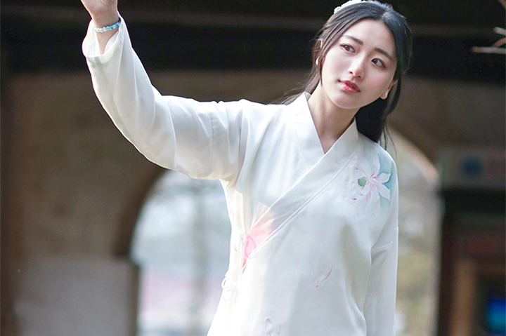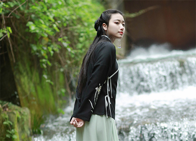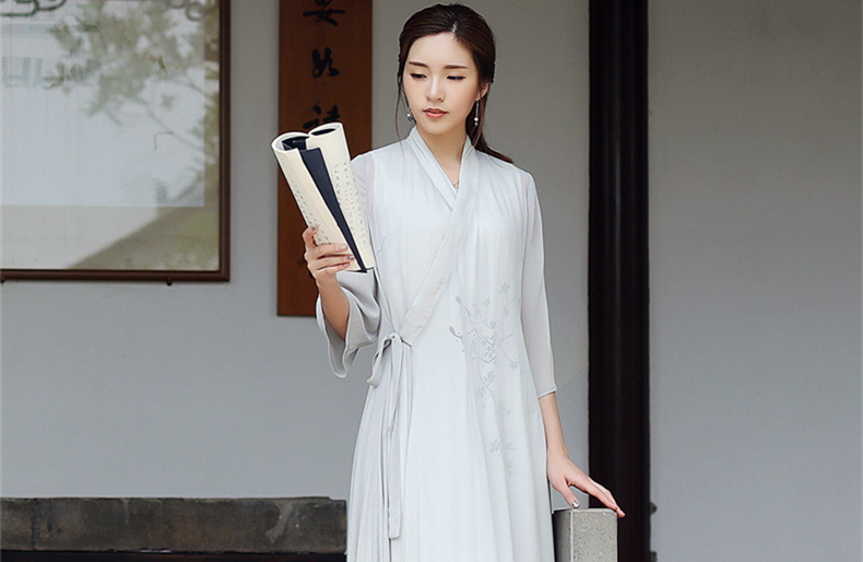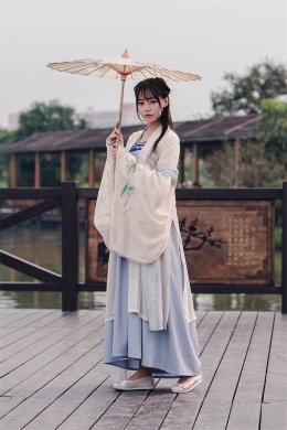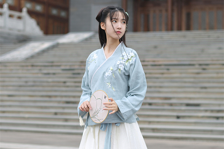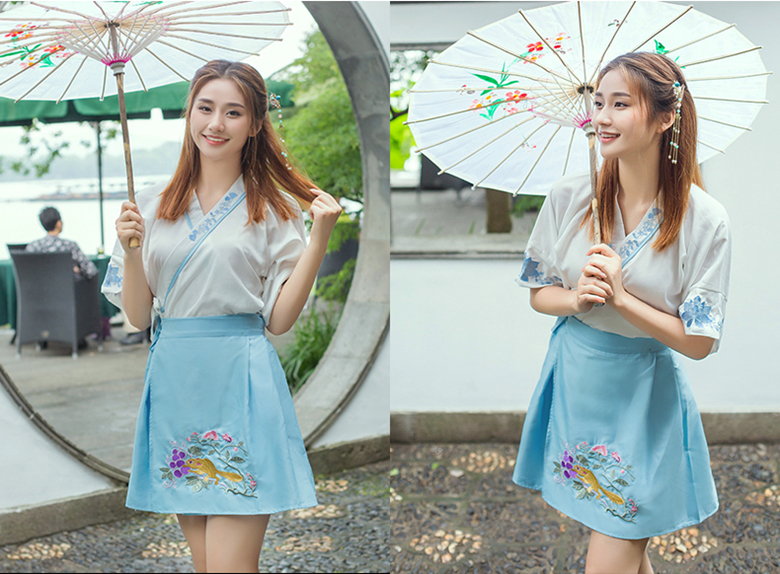 領口采用傳統(tǒng)交領設計,領邊刺繡與拼色彰顯復古氣質,袖口荷花刺繡設計,更添加幾分淡雅,裙擺底部刺繡,繡工精巧,花樣素雅大方。 漢服元素時裝,簡稱漢式時裝,也叫漢元素。……