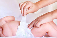 首先打開一個新的尿不濕,把腰部長的一邊在后面,短的在前面。把寶寶平放,尿不濕前后找準(zhǔn),拎起寶寶雙腳,尿不濕放在寶寶屁股下面正中...